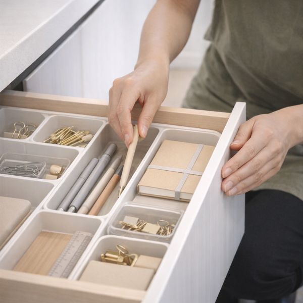 暮らしや動線を伺いながら一緒にお片づけを進めます。当日の当日予約や日程変更にも無料で対応し、無理なく続く収納づくりをサポートします。