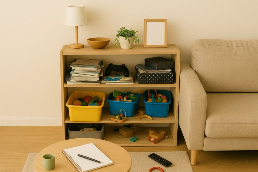 リビング収納を整えるコツは、見た目をきれいにすることよりも「家族が自然に戻せる仕組み」を作るのがポイント。