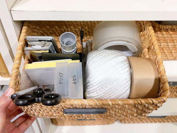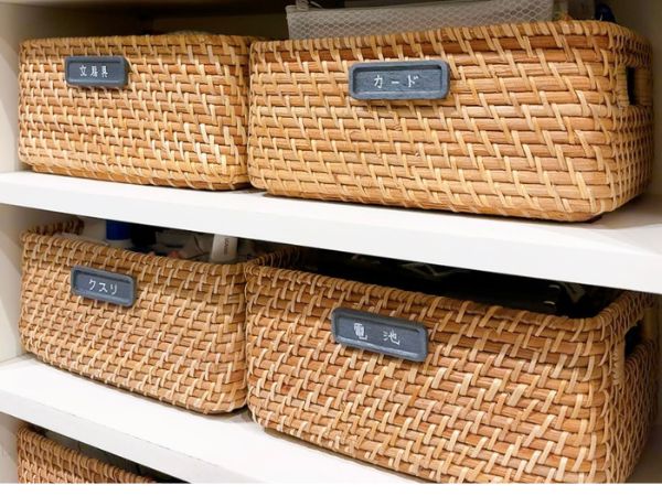 収納ラックに置く家族共有のモノは、ケースにラベルをつけておくことでそのストレスは軽減します。