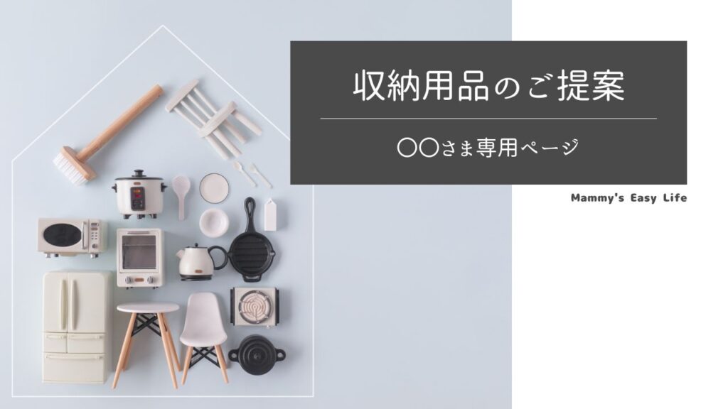 先日ご相談いただきました収納用品について、〇〇さまのご自宅にあうモノをご紹介いたします。